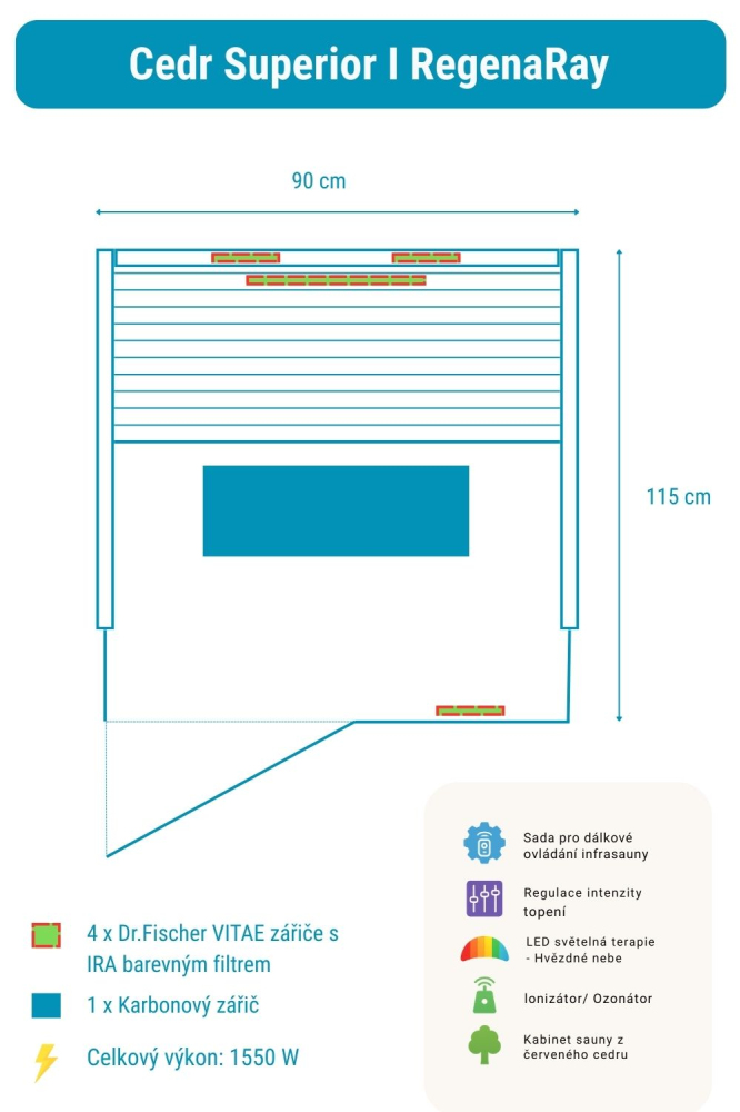 Infrasauna Cedr Superior 1 RegenaRay obsahuje: