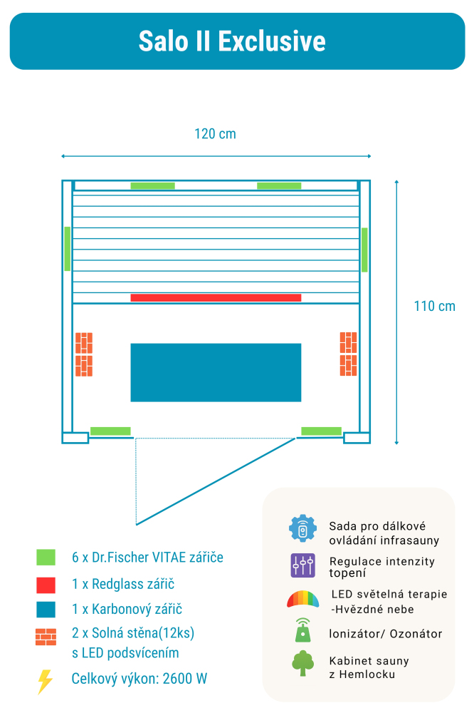 * Fotografie mají ilustrační charakter. Počet zářičů odpovídá půdorysu konkrétní infrasauny.