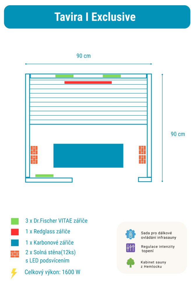 * Fotografie mají ilustrační charakter. Počet zářičů odpovídá půdorysu konkrétní infrasauny.