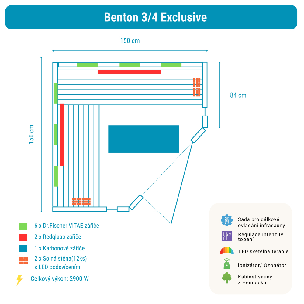 Infrasauna Benton 3/4 Exclusive obsahuje: