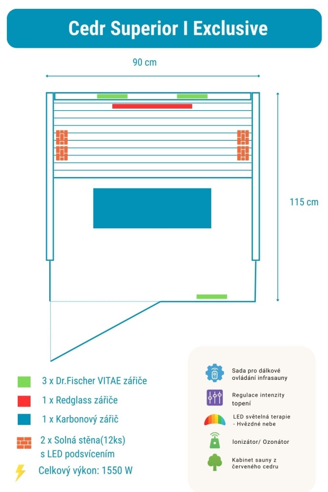 Infrasauna Cedr Superior I Exclusive obsahuje: