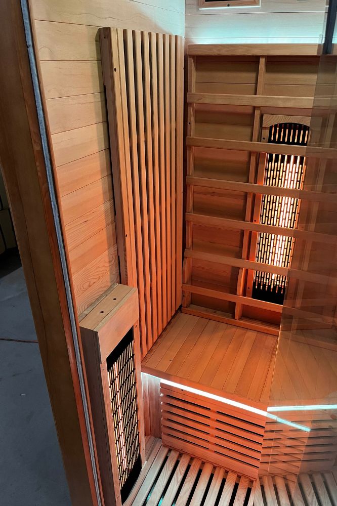Zářiče tedy není nezbytně nutné použít na čelní stěnu. Můžete je umístit prakticky na jakékoliv místo v sauně.